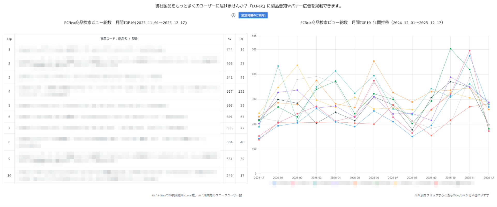 当社の販売WEBサイトでの製品ビュー数レポートで御社製品がどれだけ閲覧されているか、チェックいただけます。